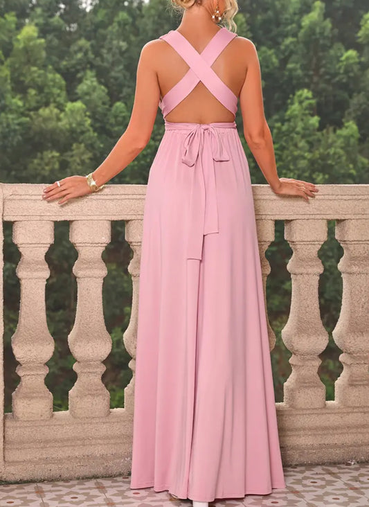 Women's Maternity Backless Split Dress with Waist Belt - Sexy and Stylish Maternity Wear