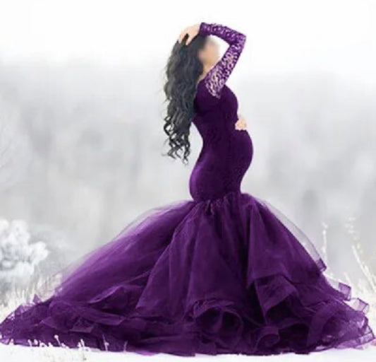 Sexy Lace splice Mesh, Shoulderless Maxi Gown Maternity Dresses