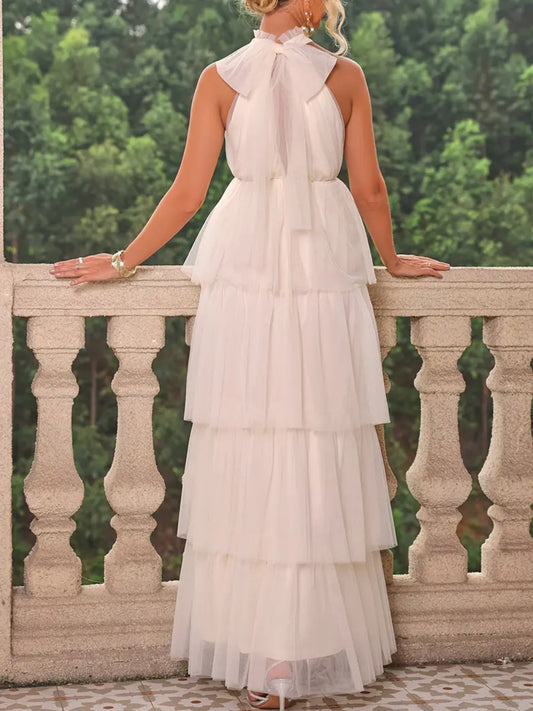 Elegant Halter Neck Maternity Maxi Dress - Tiered Tulle Design