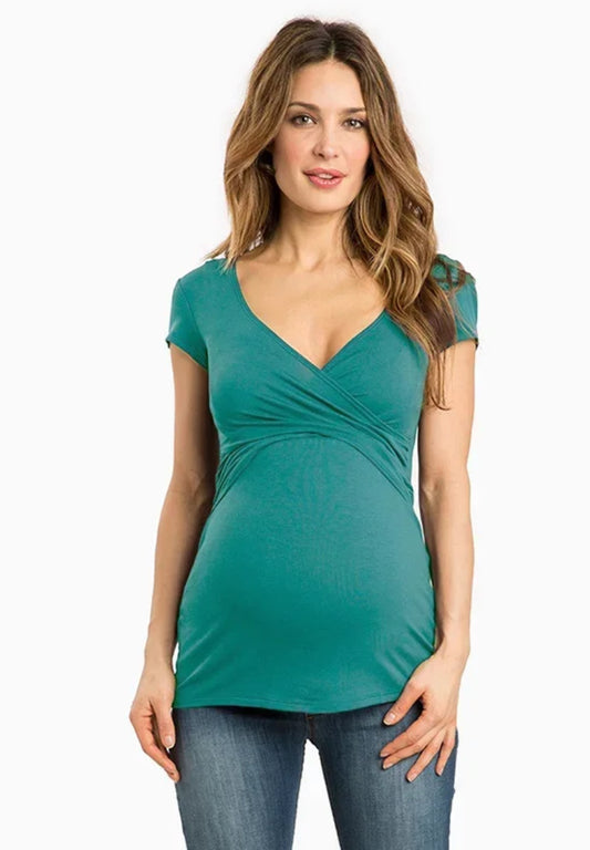 Maternity V-Neck, Casual Short Sleeve Breastfeeding Top