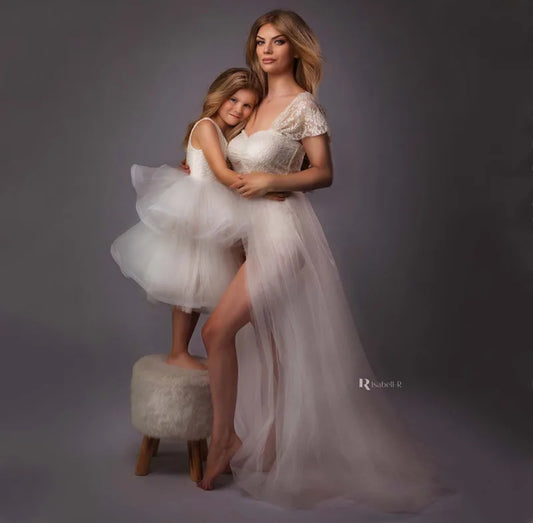 White Tulle Maxi Baby Shower Gowns- Maternity Photoshoot
