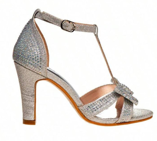 “Silver Brites” Heel Dress Sandals, Youth