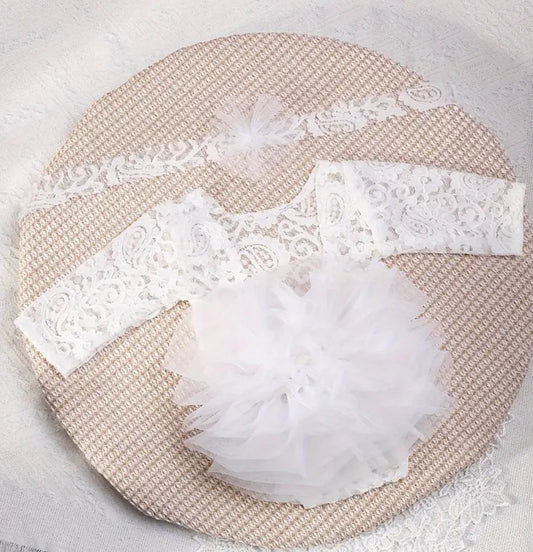 “Angel Baby” 2pcs, Lace Tutu & Floral Headband Set 🤍