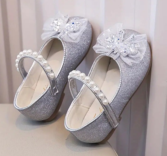 “Princess Glitter Crystal” Tassel Butterfly Knot Dress Party Children High Heel