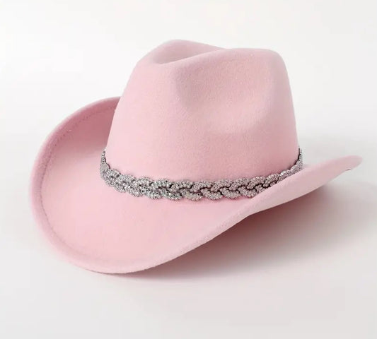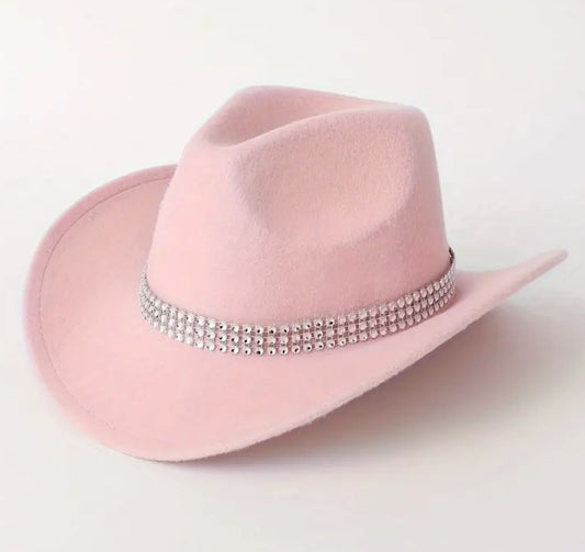 Felt Country Cowboy Hat- Wide Brim, Rhinestone Band