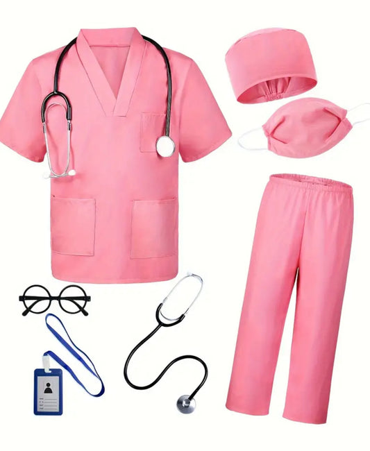 Kids Doctor Gown Costume, V-neck Top, Pants And Accessories