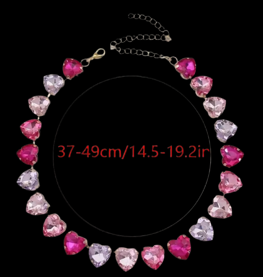 “Dazzling Love” Colorful Glass Crystal Hearts Necklace
