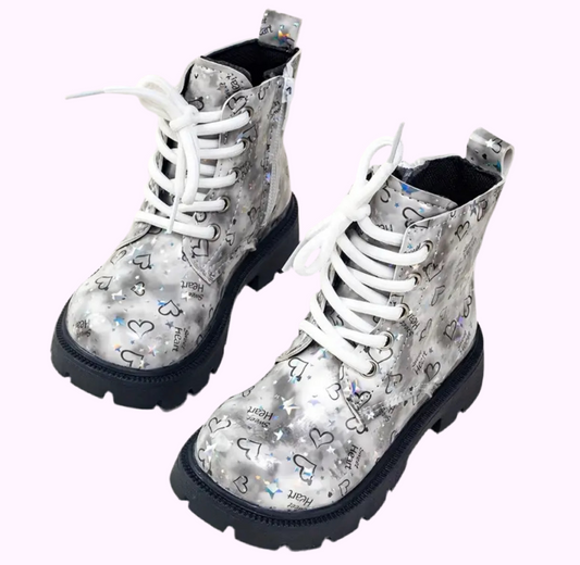 “Hearts & Confetti” Fashion Boots, Heart & Stars Pattern Zip Closure