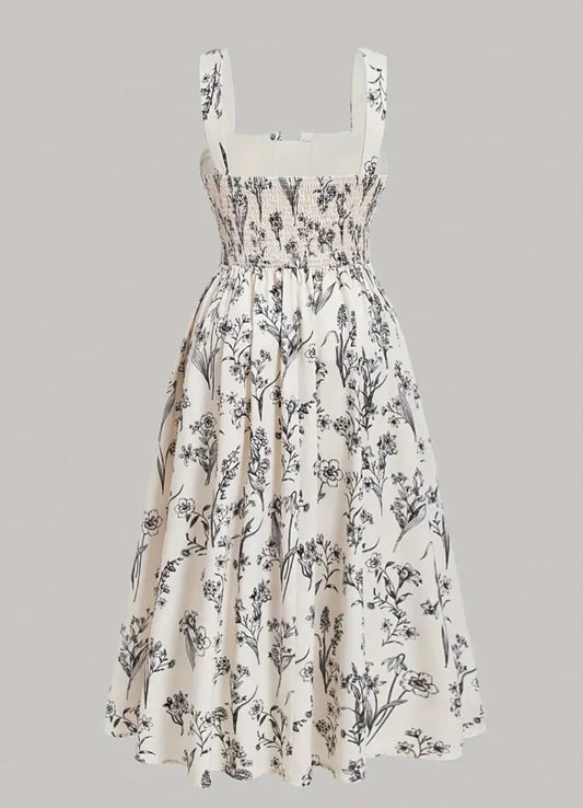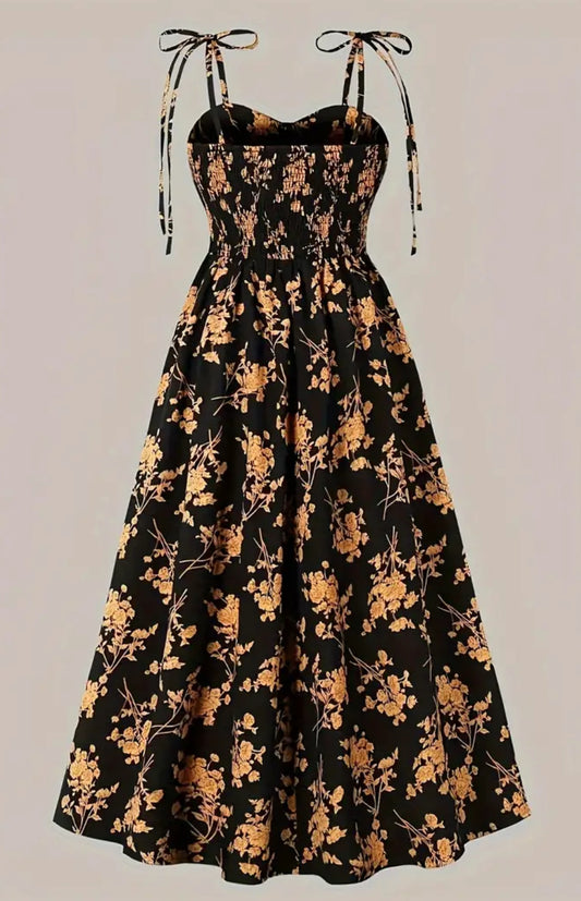 Plus Size, Floral Print, Cinched Waist, Tank Dress, Boho Shirred Back