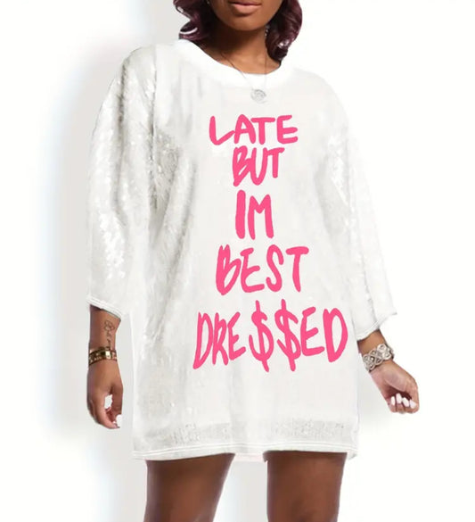 “Best Dressed” Sequined Casual Crew Neck, Long Sleeve Dress, Women's Plus Size Clothing