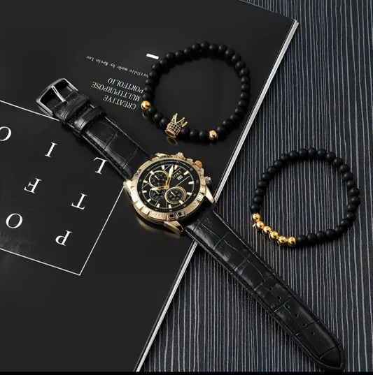 Noir King, 1pc Men's Calendar Quartz Luminous Watch & 2pcs Bracelet (Watch Set) Sugar Daddy 🎩 Collection
