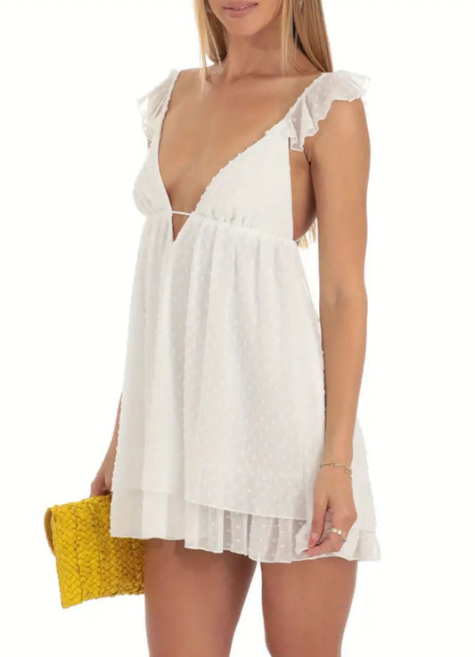 Women’s Ruffled Chiffon Swiss Dot Back Tie-up Mini Dress