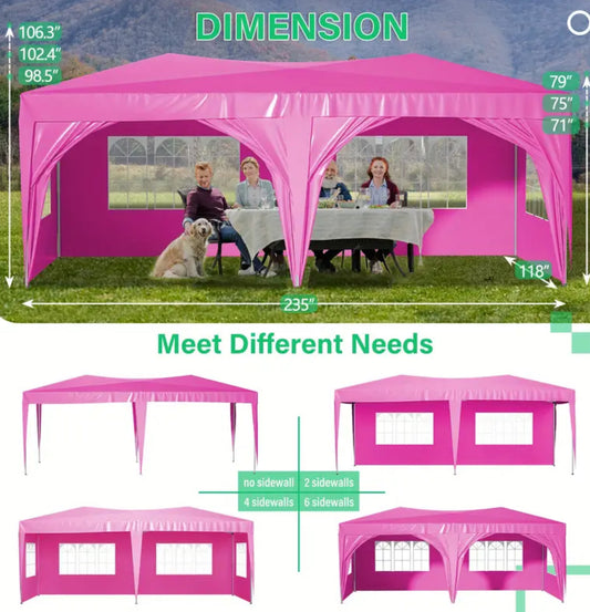 10'x20' Pop Up Canopy Tent with 6 Sidewalls, Ez Pop Up Outdoor Canopy