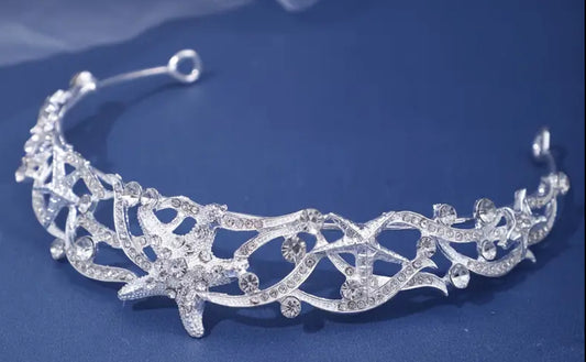 Delicate Elegant Mermaid Style Starfish Tiara, Silvery Rhinestone