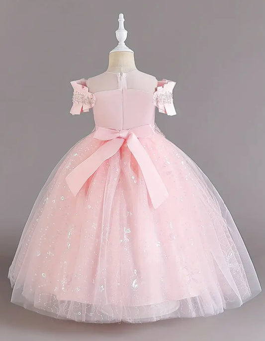 “Dreamy” Off Shoulder, Sequin Mesh Elegant Girls Dress