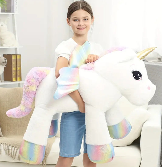Giant Cute Soft Big Unicorn Pillow with Rainbow Wings Large Plush Toy, 44”