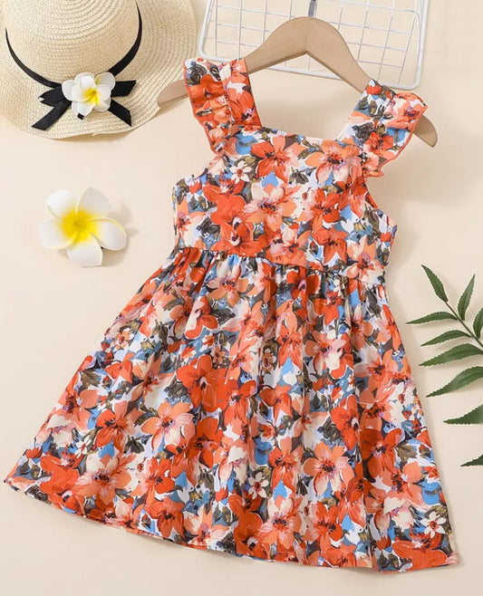 60% OFF, Girls Ruffled Sleeves Square Collar Flowers