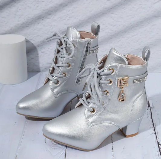 “Silver & Diamonds” Low High-heeled Boots For Teens