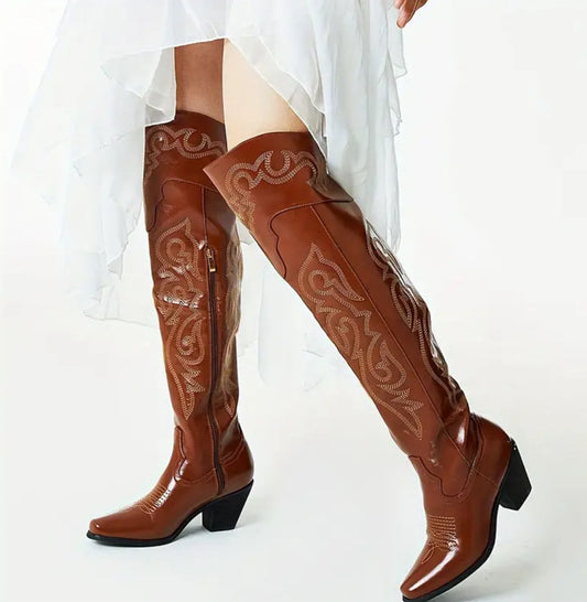 Women Cowboy Western, Vintage Retro High Heeled Long Boots