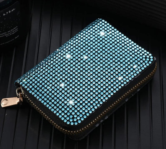 Women Card Storage Bag Stylish Coin Purse Rhinestone Small Wallet for Women Zipper Change Card Holder Wallets