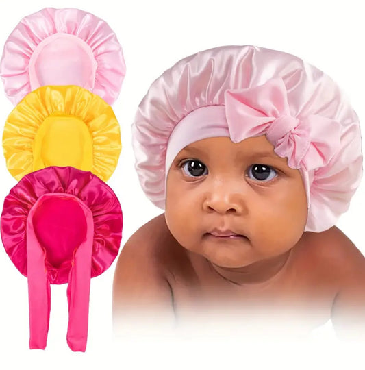 Silky Satin 3pcs Elastic Bonnet Nightcaps for Children