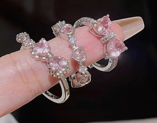 3pcs Stacking Rings Set | Sparkling Rhinestone Heart & Bows