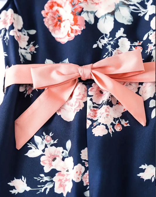 Girls 2PCS Bow Knot Crop Top + Ditsy Floral Cami Dress Set