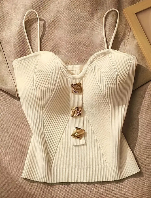 Women's “Diva” Strapless V-Neck, Gold Accent, Knitted Tank Top