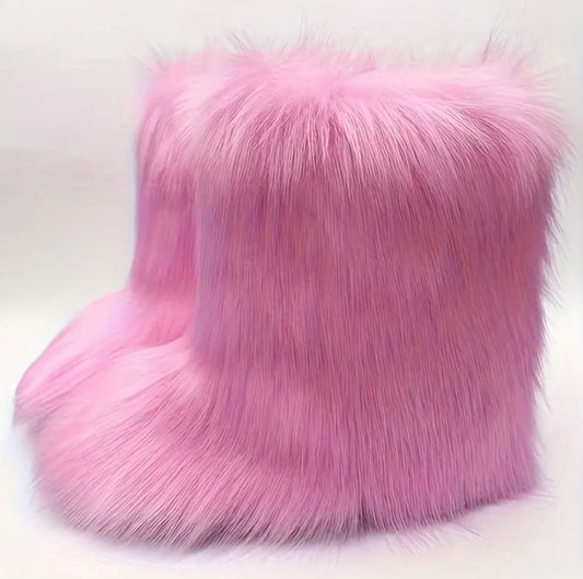 “Elegance Faux Fur Boots” Women’s, Mid-Calf, Slip-On, Plush Lining, Durable Rubber Sole