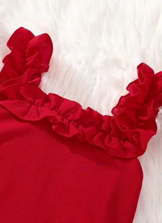 “Flor” Solid Slim Fit Cami Party Dress, Youth