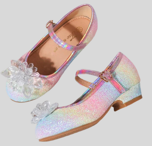 “Princess Ice Rainbow” Girls Rhinestones, Low Heel
