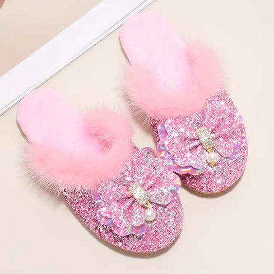 Cute Sequin Bowknot Furry House Shoes For Girls
