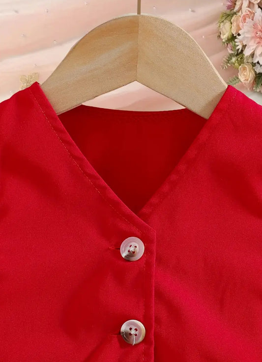 Girls ‘PAINT THE TOWN RED’ Fashion 2pcs Set Button Up Front Clip Vest + Elastic Waist Pants