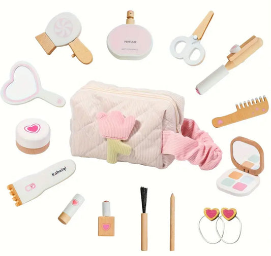 Wooden Makeup Kit Play Beauty Salon,Cosmetics and Storage Bag Age 3+