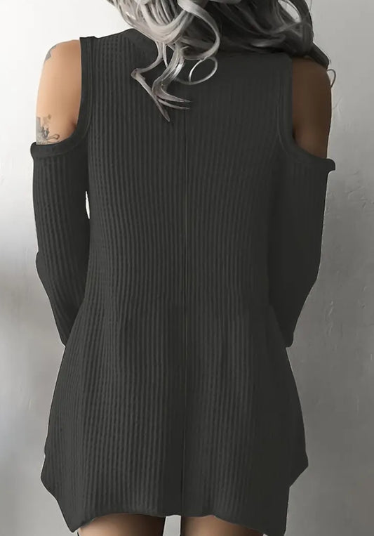 Plus Size, Cut Out Cold Shoulder, Long Sleeve Slight Stretch Top