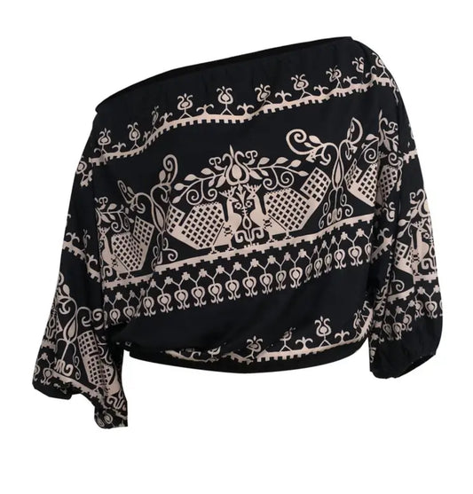 Posh Plus đ Collection 1XL-5XL Geometric Print Casual Cold Shoulder Long Sleeve