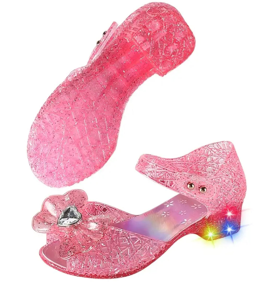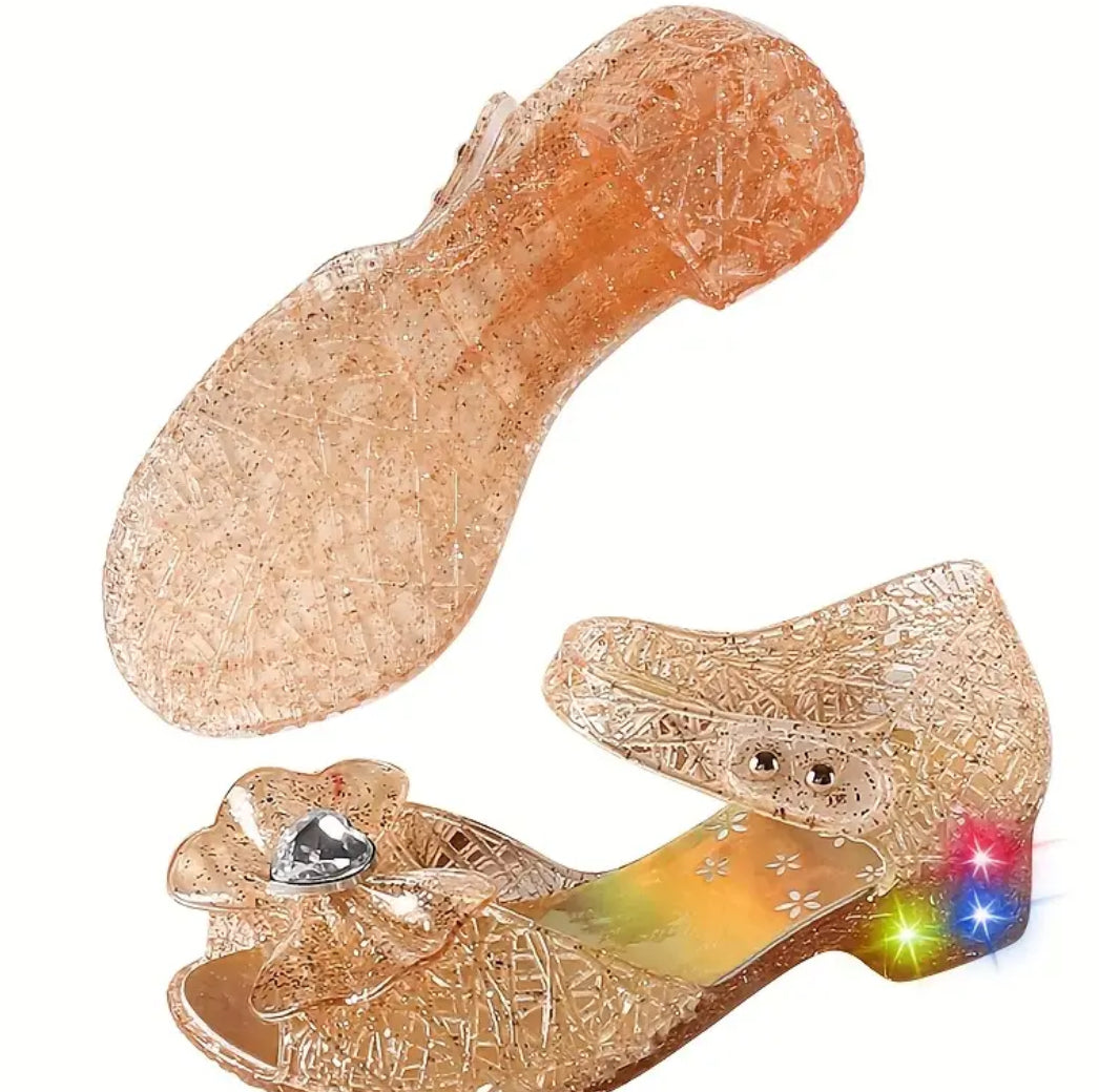 LED Light Up Princess Sparkling Crystals Jelly Flats