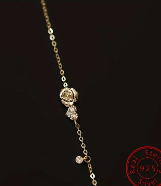 Gold Plated ‘Zirconia Rose’ Thin Chain Elegant Bracelet