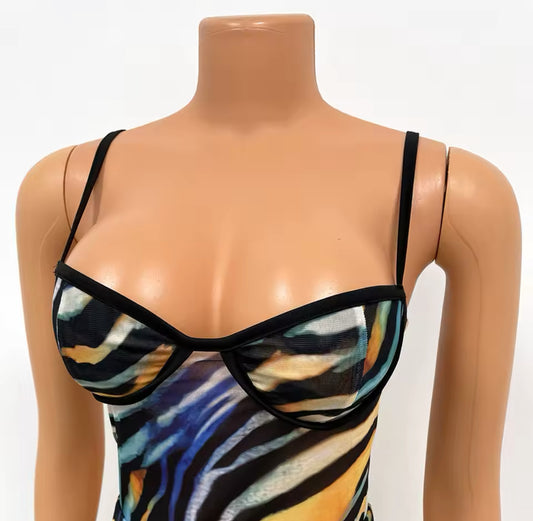 ‘Colorful Stripes’ Sheer Mesh Strap Bodysuit
