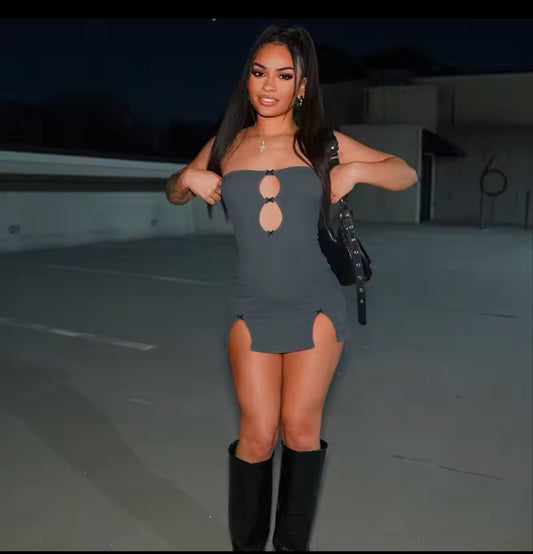 ‘Hottie’ Hollow Out Strapless Mini Pullover Dress