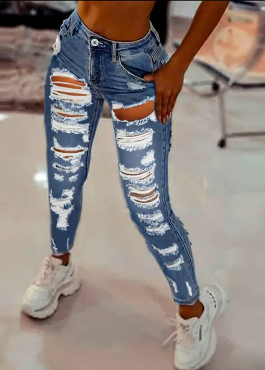 ‘Leah’ Women's Distressed Denim Leggings with Zipper Pocket, Mid-Rise, Stretchy, Hip-Lifting