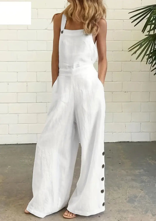 Sleeveless Wide Leg Square Neck Jumpsuit + Pockets