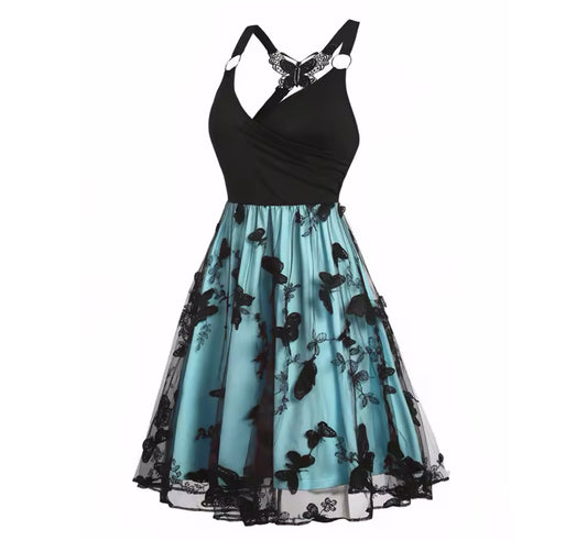 Butterfly 🦋 Fashion, Slim Pullover Mesh Elegant Vintage, Women’s Dress