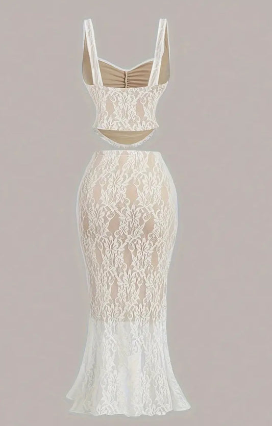 “Dreamy White Lace” Vest and Fish Tail Skirt, Two-piece