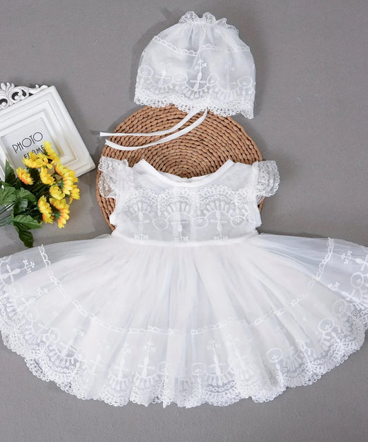 60% OFF, Baby Girls Lace Mesh Princess Christening Dress & Bonnet