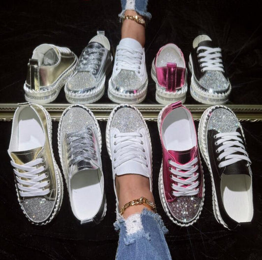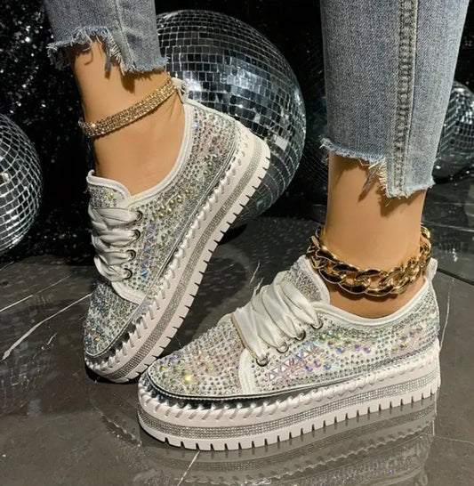 âDiamondsâ Rhinestone-Embellished Chunky Platform Sneakers Low-Top Lace-Up Ladies SneakersÂ