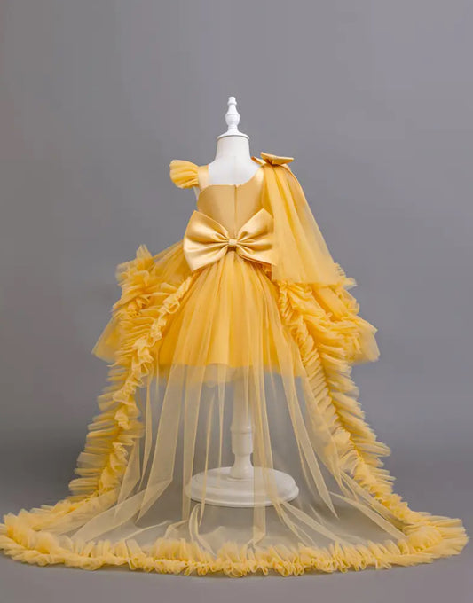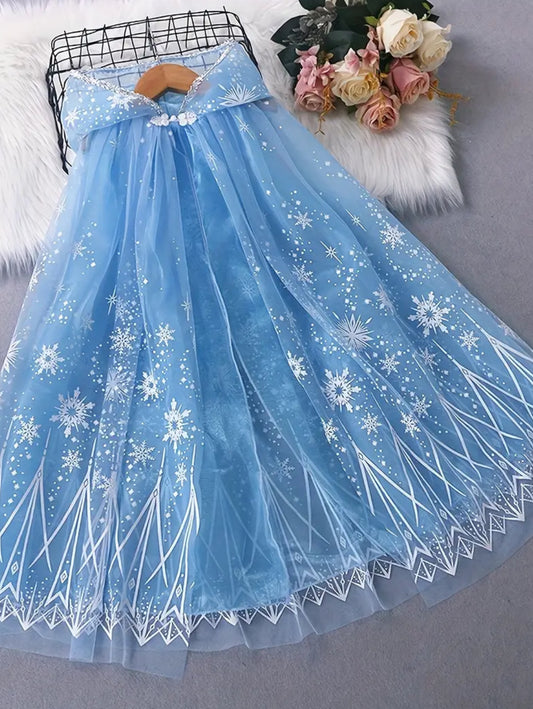 Girls' ❄️ Magical Blue Tulle Cape Dress with White Snowflakes | 29 Inches Long