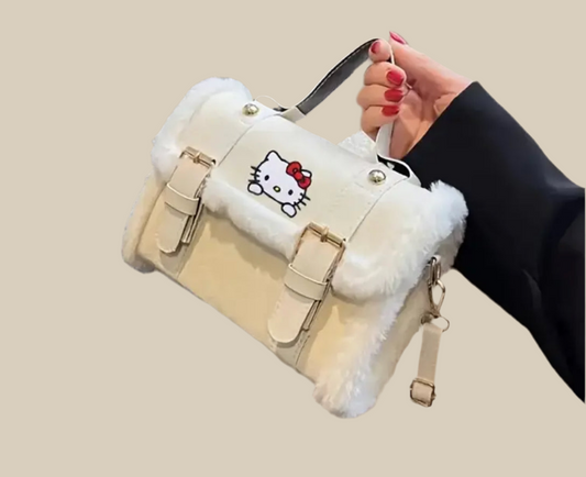 “Chic Hello Kitty” Plush Faux Fur Crossbody Adjustable Strap Bag