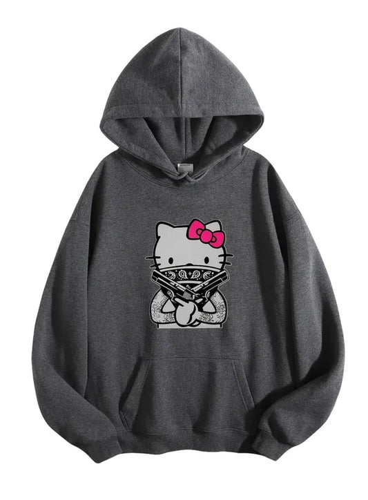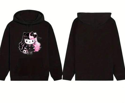 “Emo 🖤 Hello Kitty” Pull String Hoodie Stylish & Comfortable Kangaroo Pocket