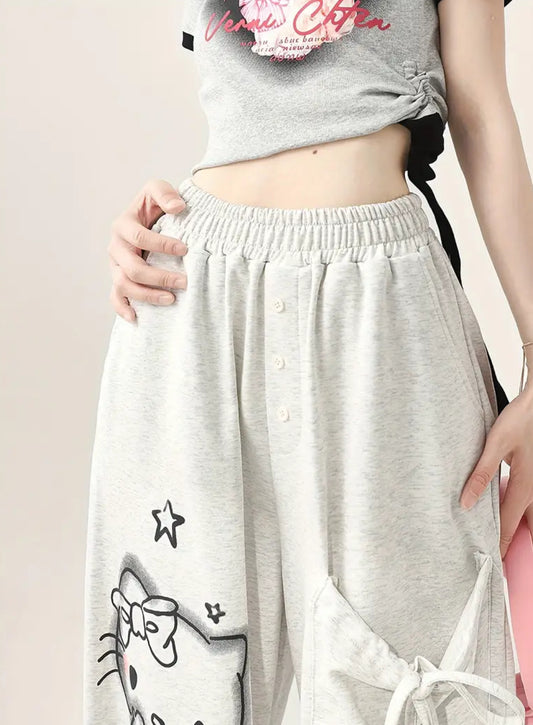 “Hello Kitty Wide Leg” 🩷 High Waisted Loose Jogger With Pockets Streetwear